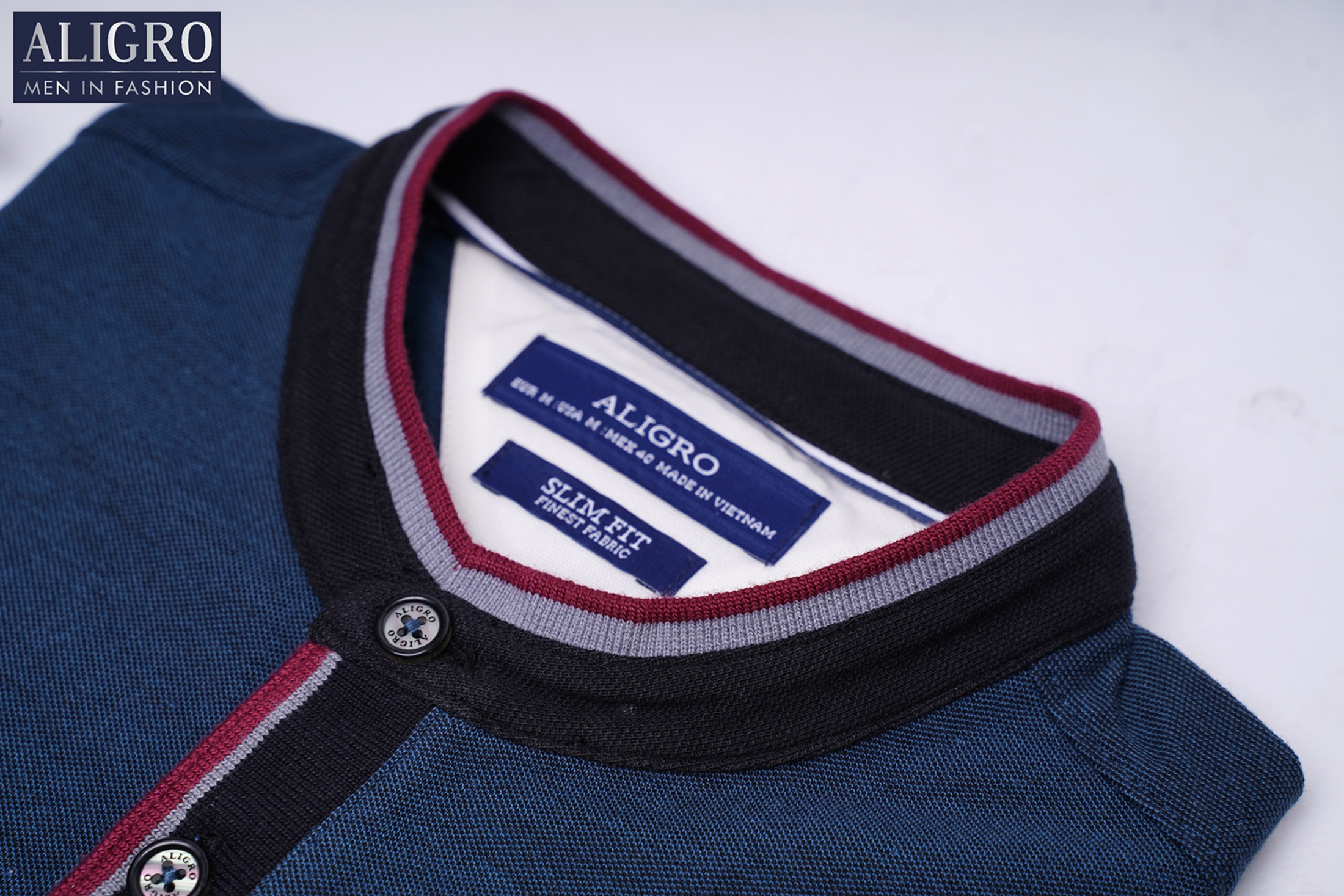 Áo polo nam ngắn tay Aligro cao cấp ALGPLO38 vải CVC cao cấp dáng slimfit cổ tàu màu xanh đen