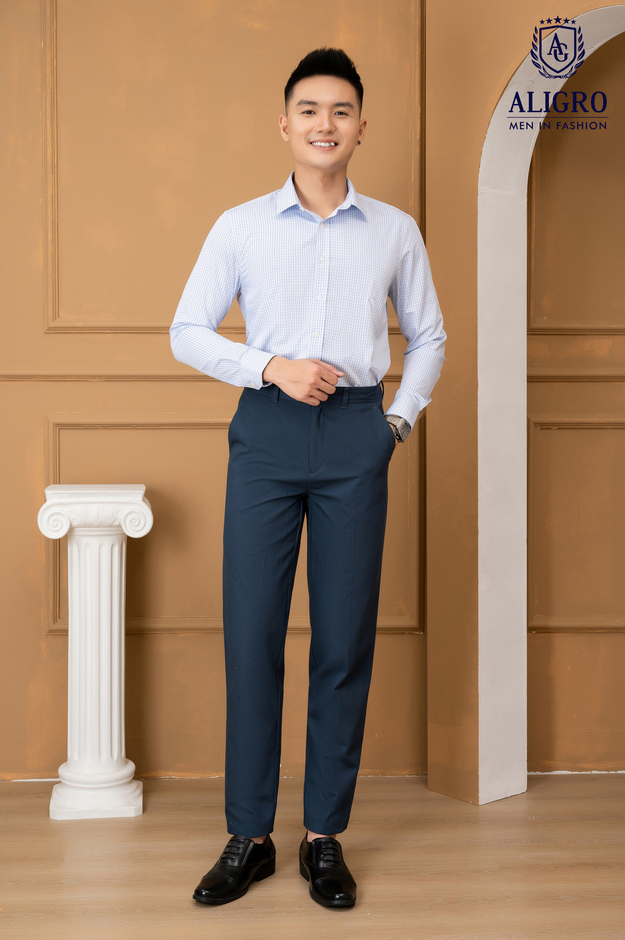 Áo sơ mi nam dài tay cao cấp Aligro ALGS220 chất liệu vải modal form SLIMFIT kẻ caro xanh