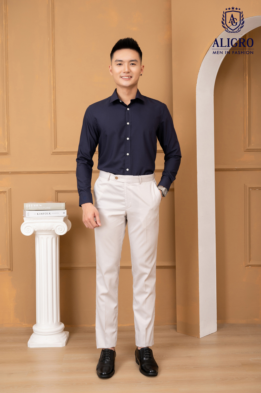 Áo sơ mi nam dài tay cao cấp Aligro ALGS226 chất liệu vải modal form SLIMFIT màu navy