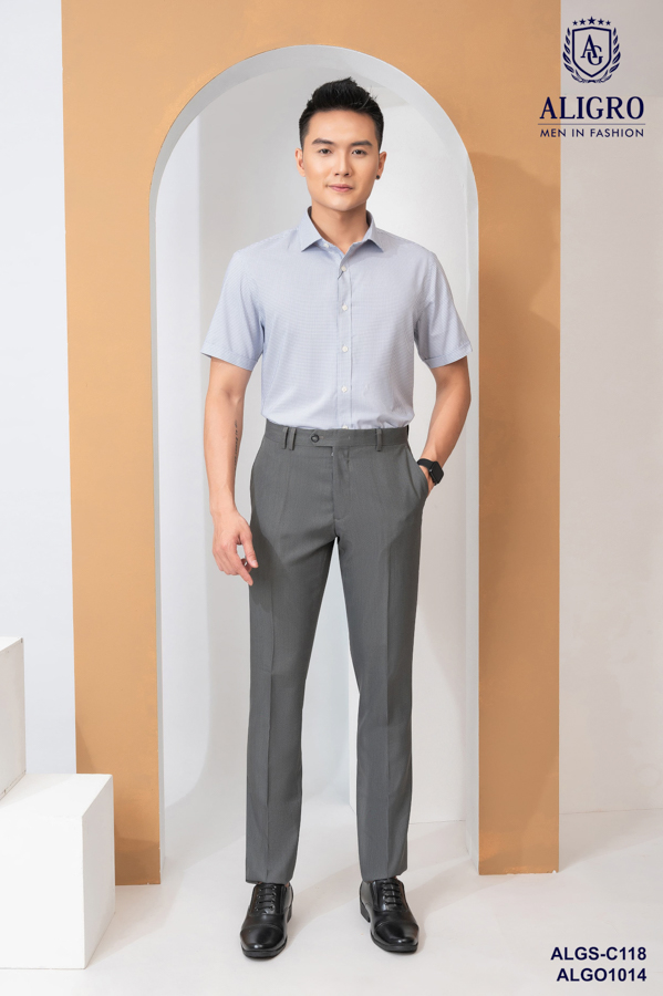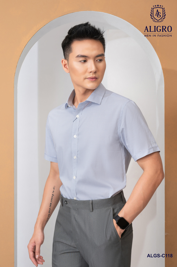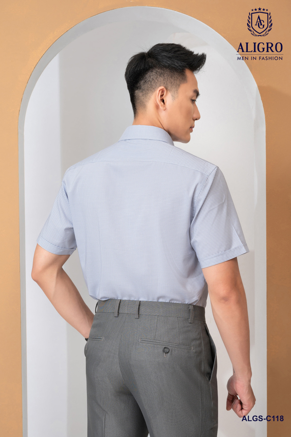 Áo sơ mi nam ngắn tay cao cấp Aligro ALGS-C118 chất liệu vải bamboo form SLIMFIT kẻ caro nhỏ màu ghi