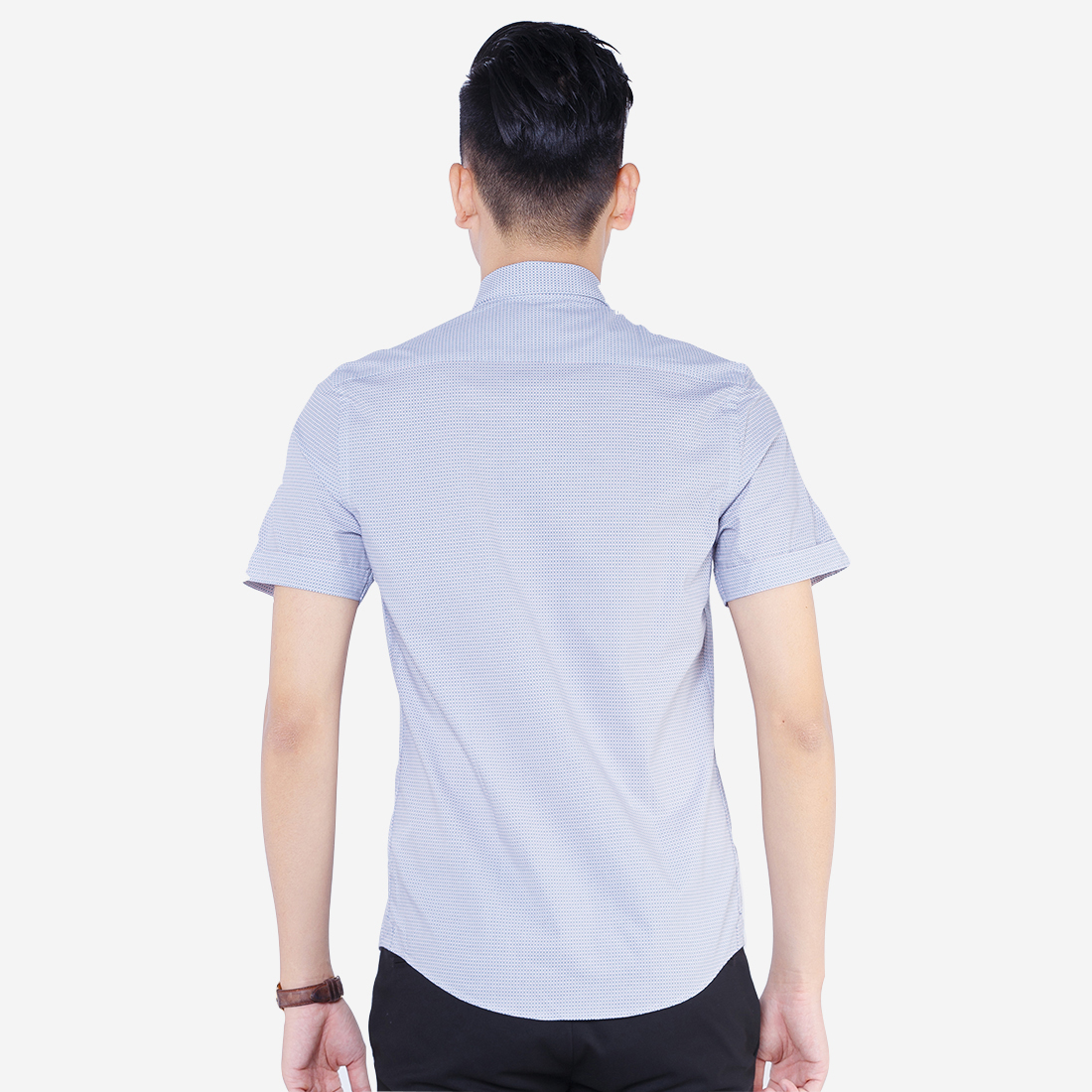 Áo sơ mi nam ngắn tay cao cấp Aligro ALGS-C49 vải cotton form SLIMFIT màu xanh dương hoạ tiết chấm tròn