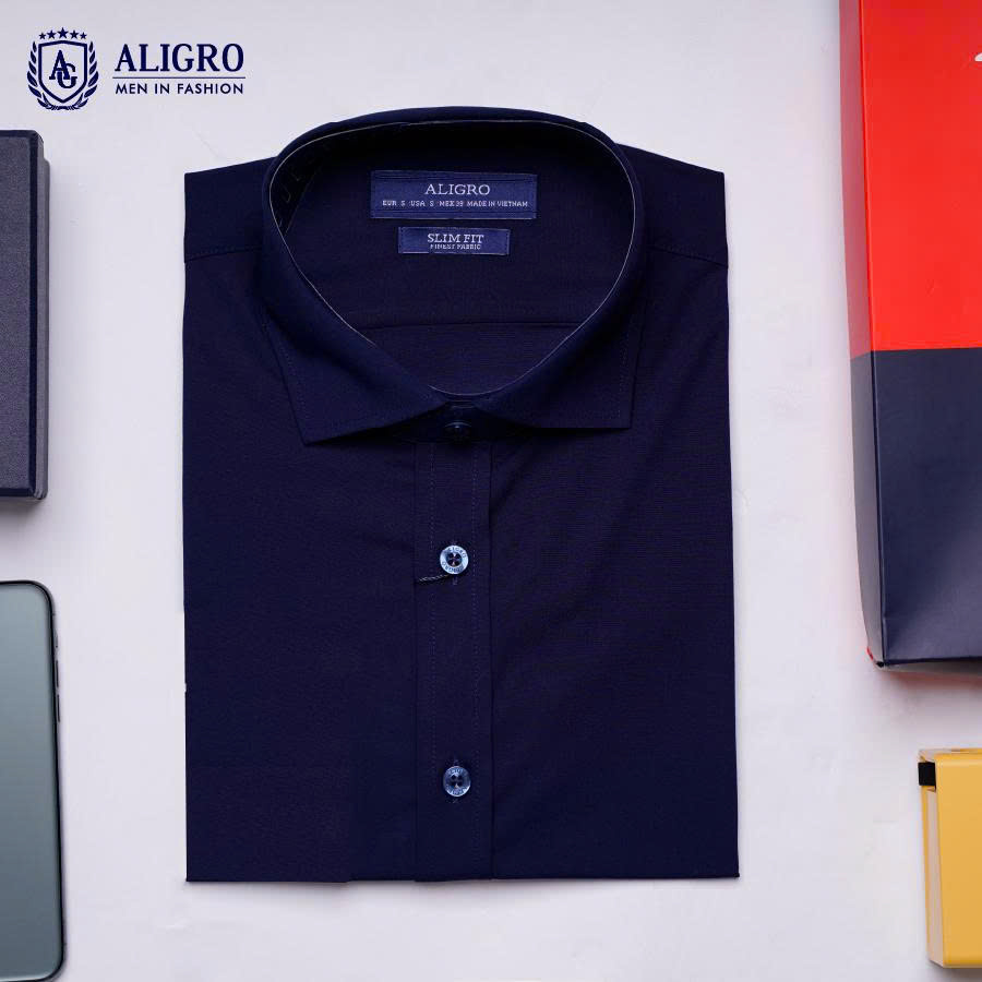 Áo sơ mi nam ngắn tay cao cấp Aligro ALGS-C80 vải bamboo chống nhăn form SLIMFIT màu navy