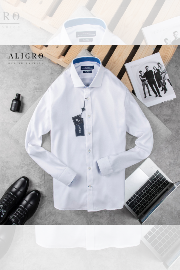 Áo sơ mi dài tay công sở cao cấp Aligro ALGS194 dáng Slimfit màu trắng phối cổ xanh
