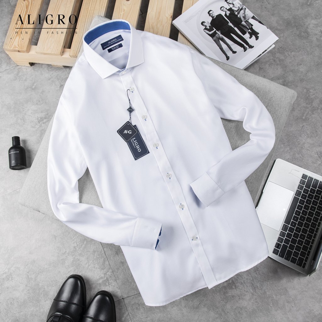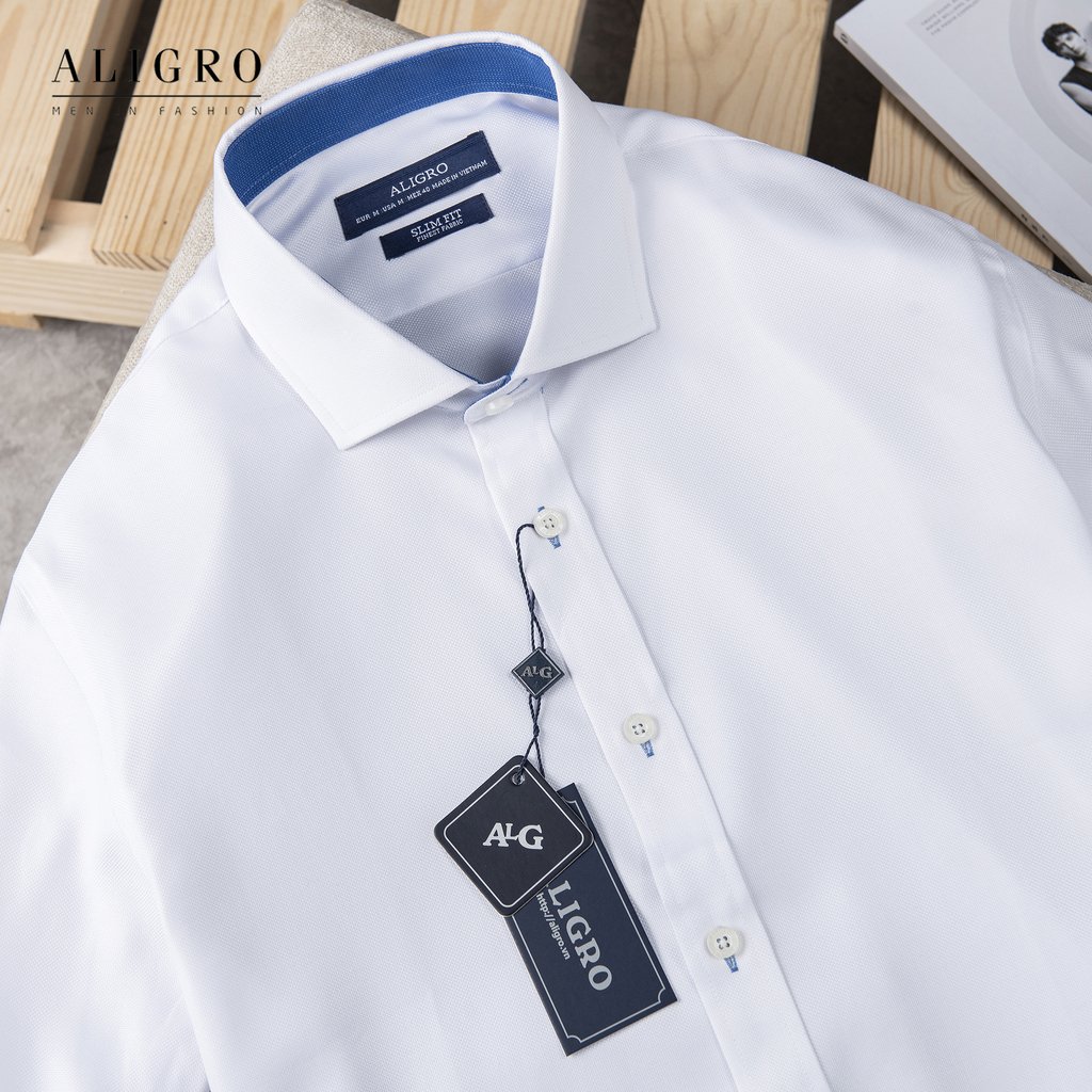 Áo sơ mi dài tay công sở cao cấp Aligro ALGS191 dáng Slimfit màu trắng