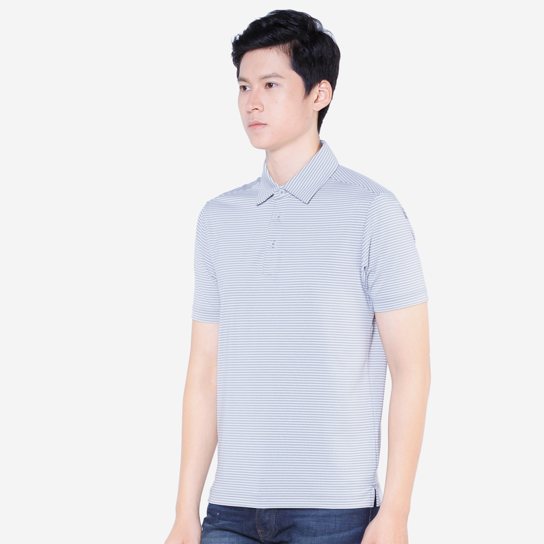 Áo polo nam ngắn tay cao cấp Aligro ALGAPC012 chất liệu vải coolmax form SLIMFIT kẻ ngang màu trắng