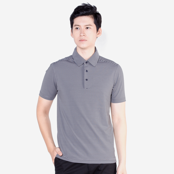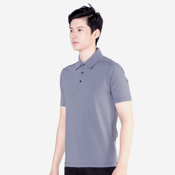 Áo polo nam ngắn tay cao cấp Aligro ALGAPC022 chất liệu vải coolmax form SLIMFIT kẻ ngang màu navy