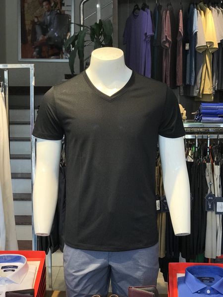 Áo thun nam cổ tim ngắn tay cao cấp Aligro ALGAPC061 chất liệu cotton form SLIMFIT màu đen