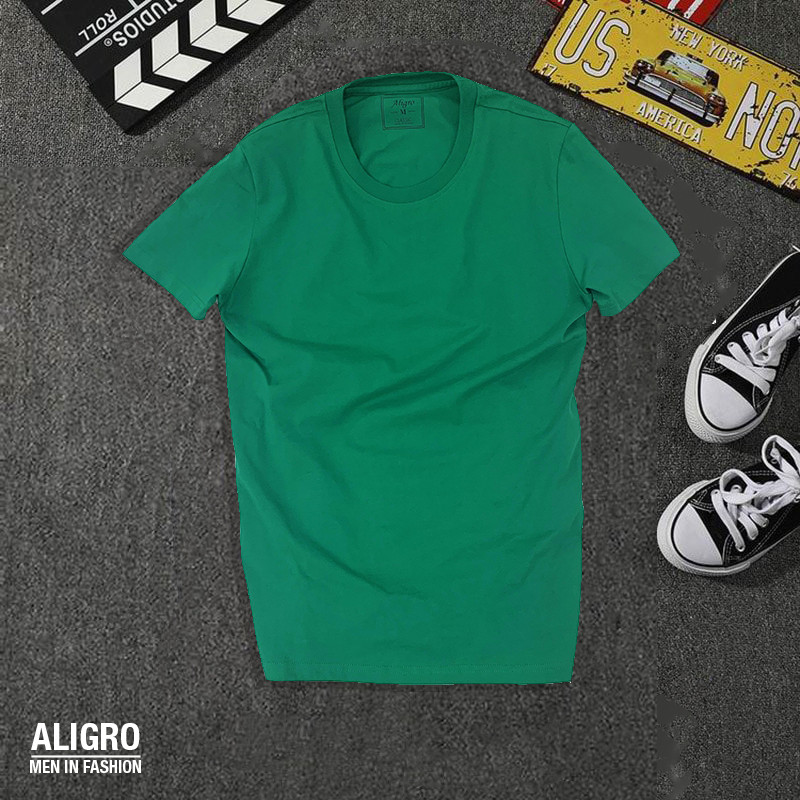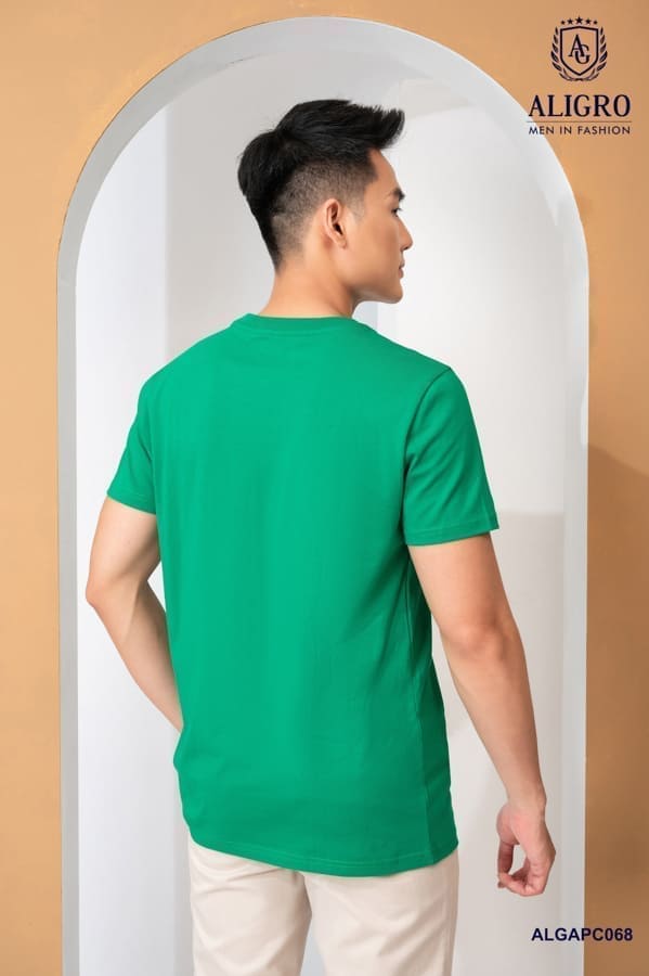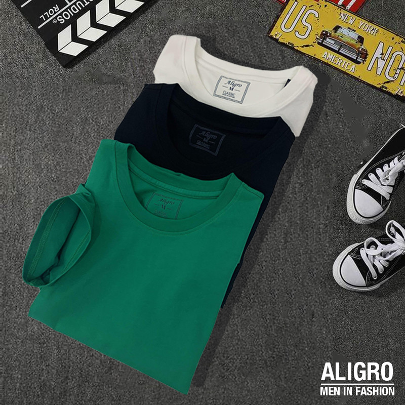 Áo thun nam cổ tròn ngắn tay cao cấp Aligro chất liệu cotton form SLIMFIT