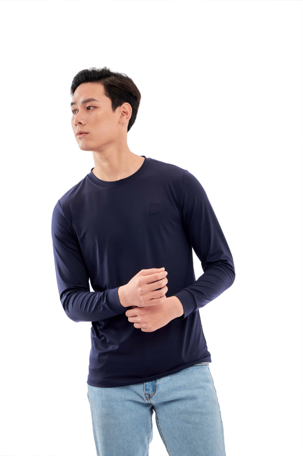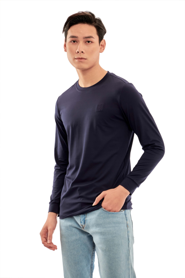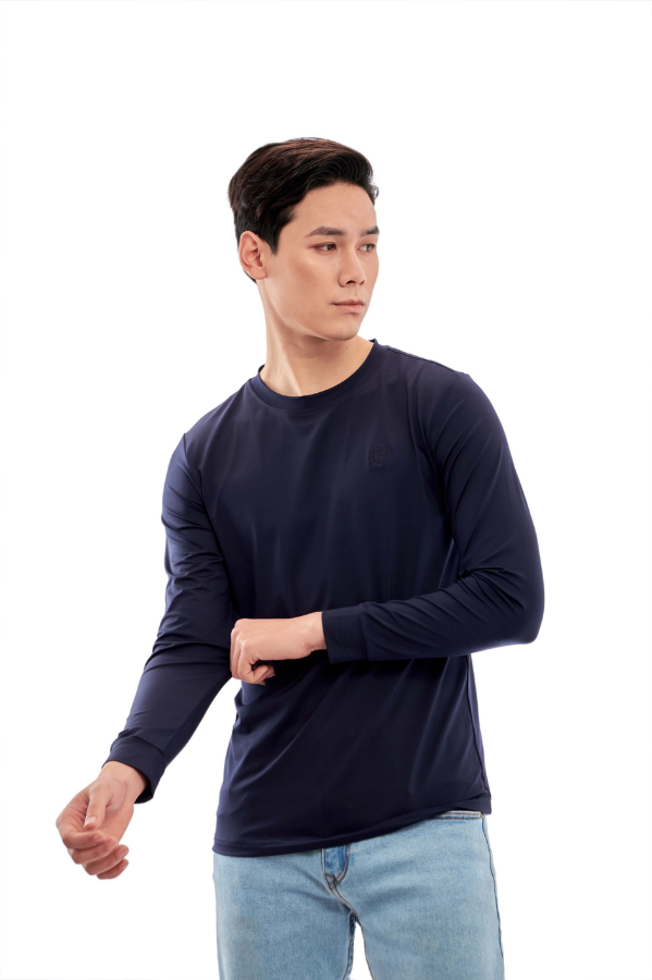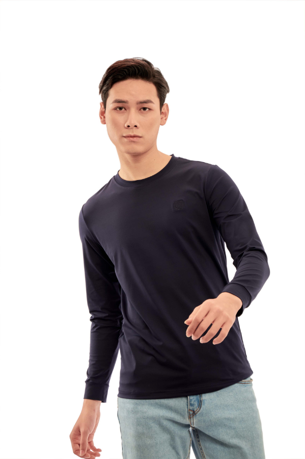 Áo phông dài tay không cổ màu navy Aligro ALGAPD059