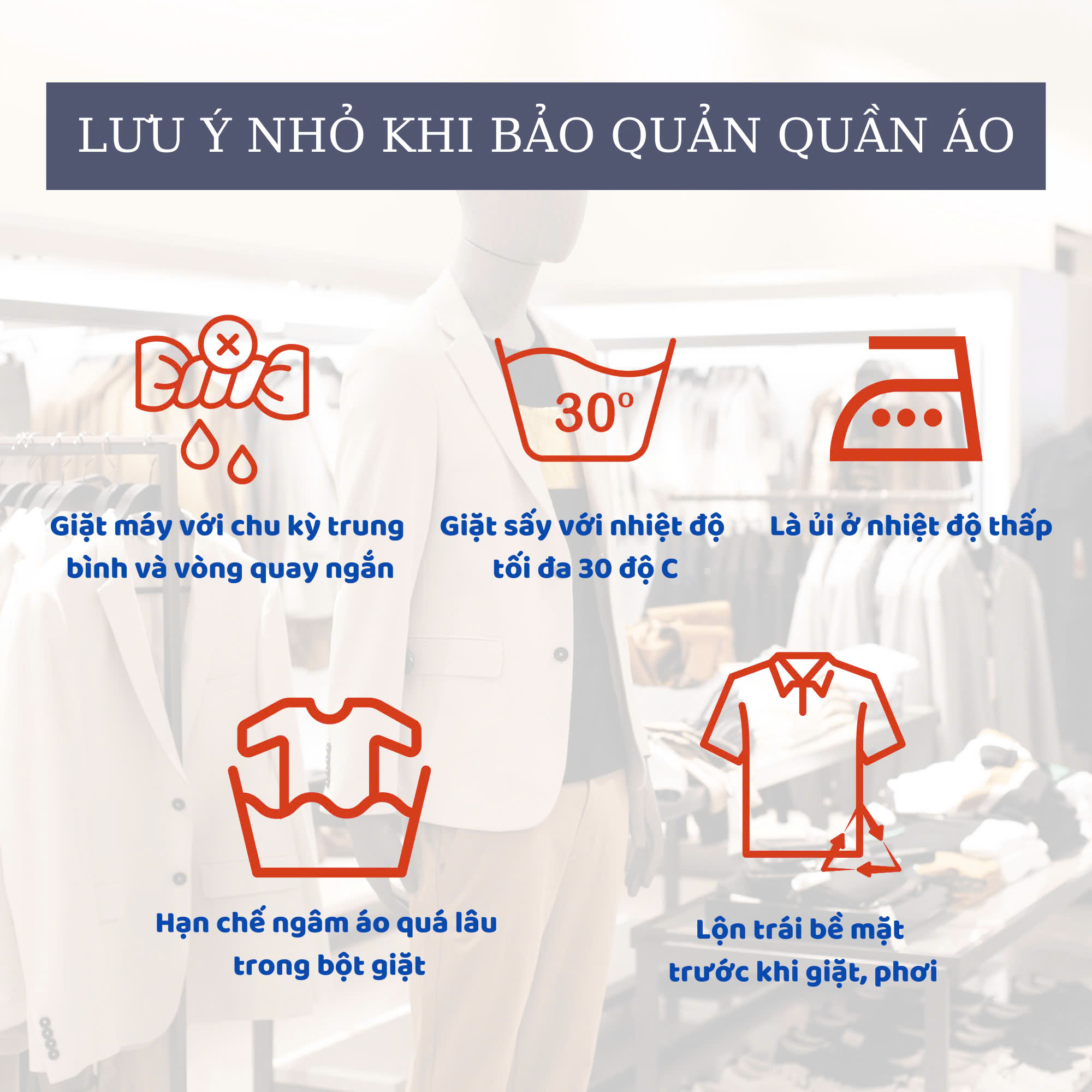 - Không giặt áo với các dung dịch tẩy rửa, xà bông hay nước xả vải làm mềm vải.
