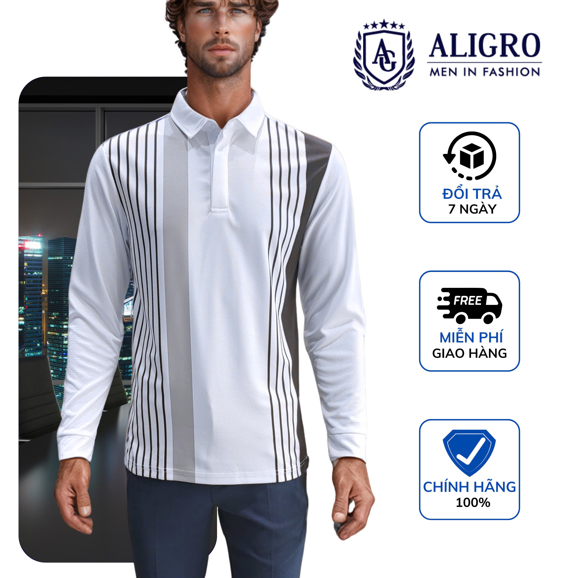 Áo polo dài tay nam, áo thun dài tay Aligro có cổ trắng kẻ sọc, co giãn cao cấp, vải mềm mịn thoáng mát ALGAPD067