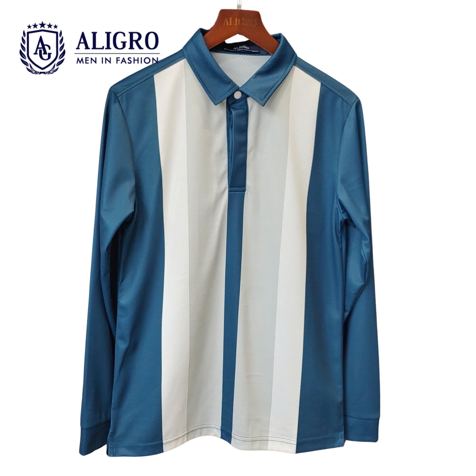 Áo polo dài tay nam, áo thun dài tay Aligro có cổ xanh kẻ sọc, co giãn cao cấp, vải mềm mịn thoáng mát ALGAPD068