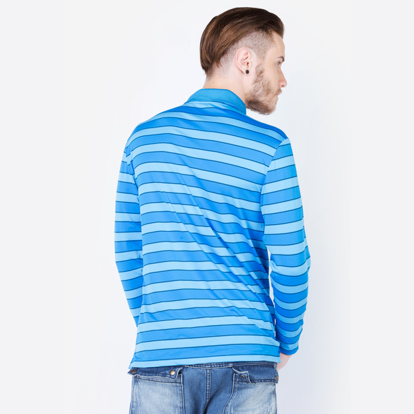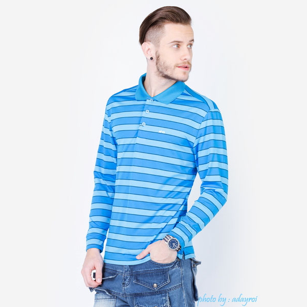 Áo thun dài tay nam cao cấp ALIGRO cổ bẻ co giãn, thoáng khí kẻ xanh dương ALGAPD018
